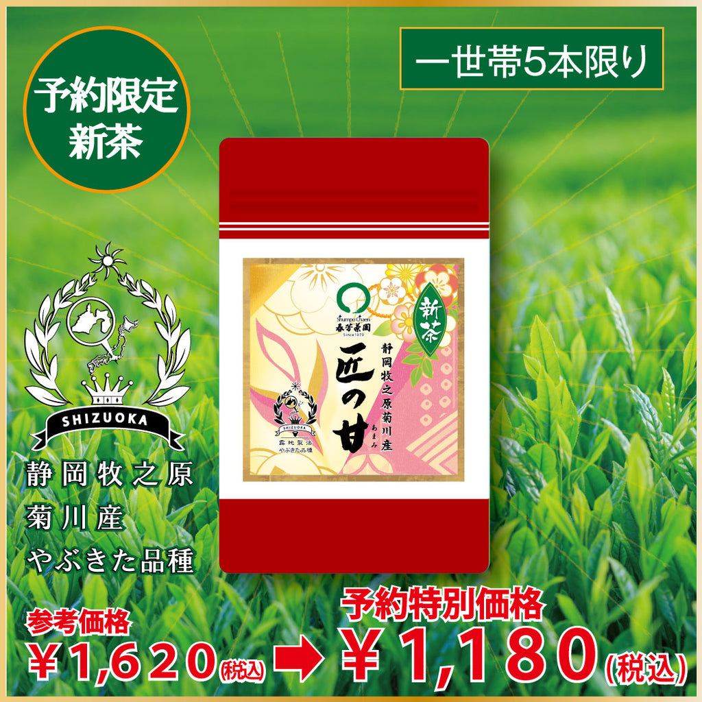 「匠の甘」80g詰〔予約限定新茶〕お渡し5月8日スタート!参考価格1,620円の品 ⇒限定新茶予約価格80g詰1,180円※通常商品を限定新茶と合わせてご注文の場合は限定新茶の出荷日になります。