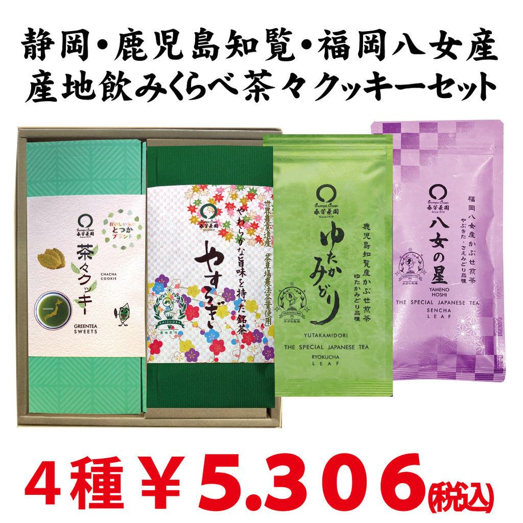 Shizuoka Makinohara, Kagoshima Chiran, Fukuoka Yame production area drinking comparison chacha cookie set