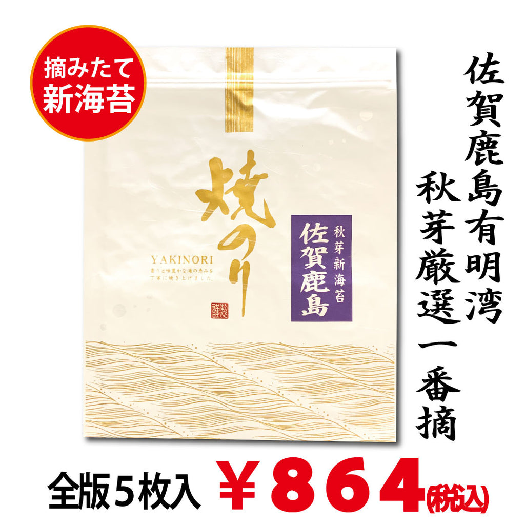 【今だけ味わえる、摘みたての新海苔】 毎年楽しみにしていただいているお客様も多い摘みたての新海苔が入荷しました。 今回ご用意出来たのは、佐賀県鹿島産・有明湾の秋芽を使った最上焼海苔。その年の最初に摘み取られる「秋芽」ならではの、やわらかい歯切れの良さと香りの良さが特長です。 海苔は秋から冬に...