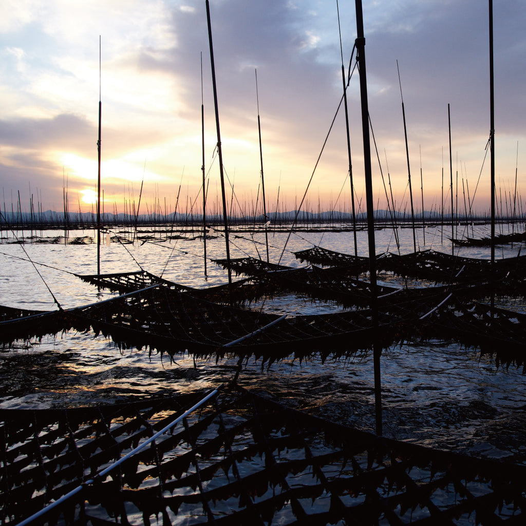 The "Ariake Sea" is a shallow sea with tidal differences, and the seaweed nets stretched on the stilts receive plenty of sunlight, repeatedly drying and moistening, and delicious soft seaweed grows.